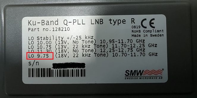 LNB SMW PLL 9.75 GHz ± 10 kHz LNB SMW Q-PLL-R +10.00 GHz ± 25 kHz SMW Q-PLL-R+9.75 GHz ± 25 kHz