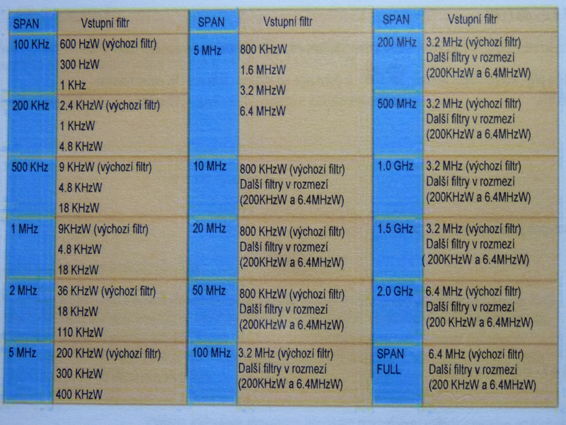 - hodnota vstupných filtrov RBW= 1 W/kHz + 600 W/Hz -