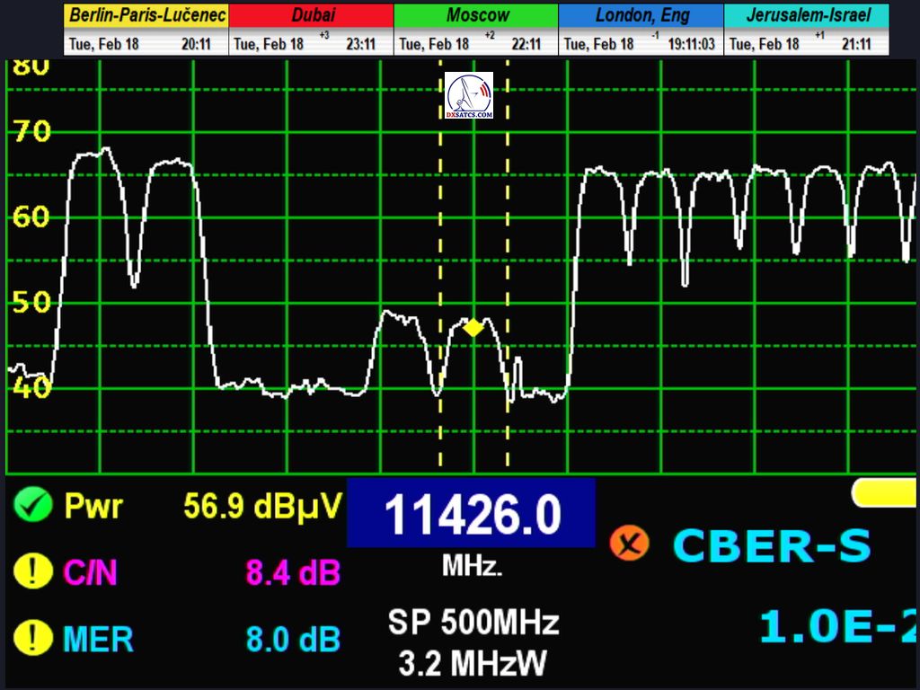 f=11 426 MHz_H : SNR=7,5-7,8 dB (normal peak quality_E2/Open ATV 7.1)