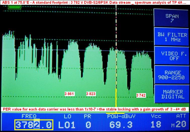 ABS 1 at 75.0°E - A+B footprint : analysis of the spectrum and quality of the reception