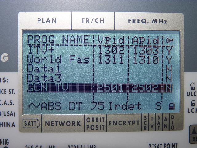 ---SR--- | ---FEC--- | ---Footprint--- | ---Antenna--- | ---Video/Encryption--- |