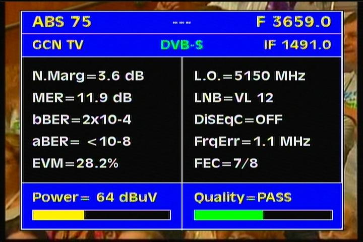 ABS 1 at 75.0°E-B footprint : 3 560 V packet CTH Cable Thai Holding-qualitative peak MER=12.2 dB