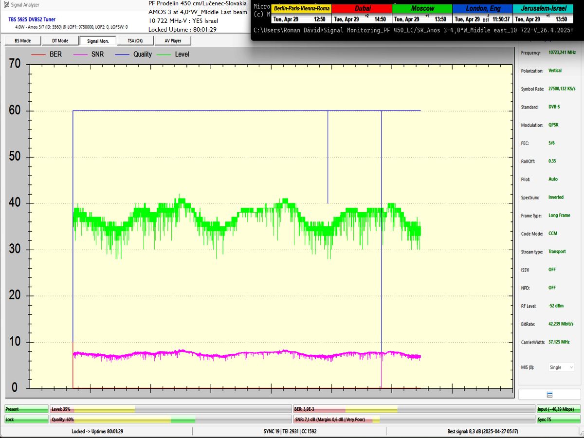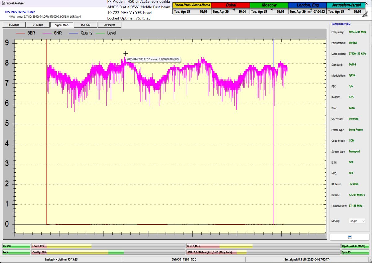 ►►Amos 3 at 4.0°W-Middle East: Continuous signal monitoring / Nepretržitý signálny monitoring