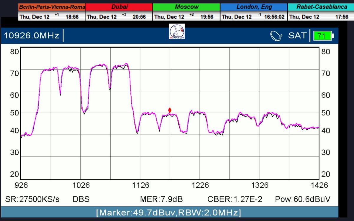 ►Analýza spektra a meranie C/N,Pwr... s Televes H60 : 10 890 > 10 926 MHz_V - YES Izrael