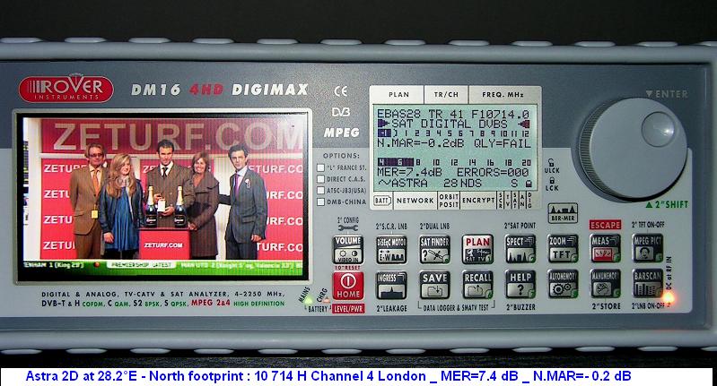 Astra 2D at 28.2°E - H+V North footprint : Radiating diagram & spectrum analysis & quality analysis of reception