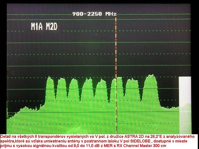 Aktuálne výsledky analýzy transpondérov vysielaných v H aj V polarizácii z družice Astra 2D na juhu stredného Slovenska s PF Channel Master RX 300 cm
