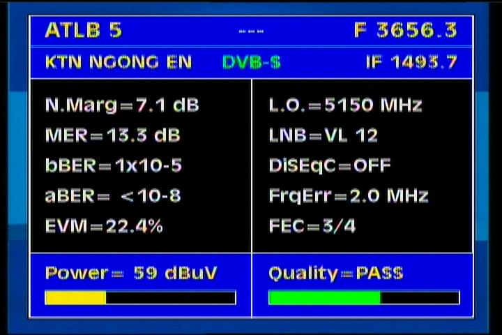 Atlantic Bird 3 at 5.0°W - panatlantic footprint : 3 656 R KTN Kenya