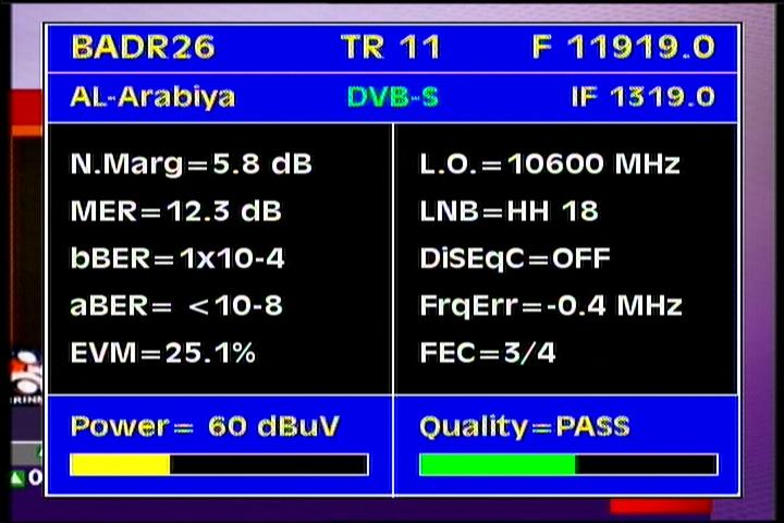 Badr 6 at 26.0°E - BSS footprint :11 785 V Arabsat Network