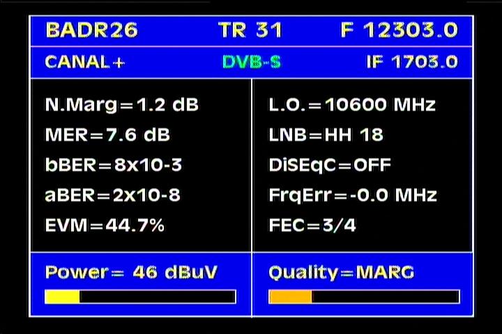 Badr 6 at 26.0°E : percent Q & stream data