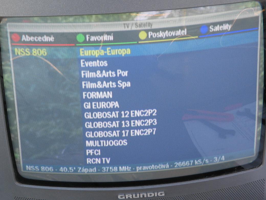 Za poměrně větrného, studeného počasí pozdě odpoledne, bez cizí pomoci najít zmíněný satelit NSS806 netrvalo snad ani  dvacet minut.  Bohužel nastupující šero mě nedovolilo zkusit vyhledat PAS9 na 58 st. západně. Vrátil jsem se k jistotě a naladil EXPRES 6A na 80 st. východně. Tady naběhly všechny programy na maximum během chvilky.  Byl jsem mile překvapen funkcí zmíněné depolarizační destičky. Tam byl asi základní problém. Na Humax 5500 bylo vyhledání satelitu velmi obtížné (neřku-li nemožné), na Tripldragona celkem bez problémů (při vložení prakticky jakékoliv frekvence z přijímaného satelitu). Když pominu nejprve černobílý obraz NTSC (výměna kabelu scart za jiný s obsazenými všemi kolíky a pohoda), pak zase výběr polarizační destičky z různého materiálu - neosvědčil se teflon, ale materiál z cuprextitové desky udělal divy. Pokud by ještě počasí dovolilo, zkusil bych možná ještě nějaký exotický satelit. Přiložené fotografie jsou dělané na rychlo, jen pro "jakous takous" dokumentaci, proto omluvte jejich kvalitu.