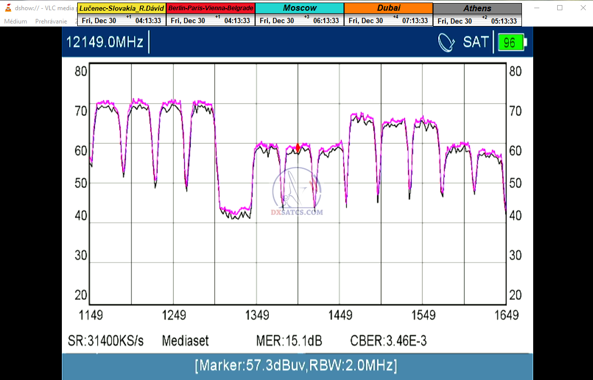 →pri poslednom zbere signálnych dát z TP IT2 som dňa 31.12.2022 zaznamenal špičku kvality MER=15,3 dB_čistá signálna rezerva okolo 8,5 dB. Práve tento typický,nie výnimočný signálny stav je tým rozhodujúcim v otázke argumentácie prečo práve tejto frekvencii priraďujem atribút referečná pre celé frekvenčné spektrum od 12 111 do 12 466 MHz v talianskom vyžarovacom diagrame.Autor Roman Dávid,konkrétne v tomto prípade opäť neprepisuje/nekopíruje a nepracuje už s dávno zadefinovanými faktami,ale na základe nespochybniteľne dokázaných výsledkov signálneho monitoringu v kvantite 1x72 hodín,stanovuje práve referenčnú frekvenciu f0=12 149 MHz_V ako ten prvý v Európe a to pre celú zónu príjmu "Out of footprint".Pochopiteľne ak by som atribút referenčnosti nedokázal v kontinuálnom signálnom monitoringu v kvantite 1x72 hodín,potom by som nič z predošlej vety nemohol tvrdiť,pretože Veda je postavená na nespochybnitelnom dôkaze a paveda na náhode pochádzajúcej len zo sporadicky prítomných špičiek výkonu v trvaní typicky jednotky hodín,ktoré sú bežnou súčasťou družicového príjmu a čakajú na ňu desiatky tisíc "Nadšencov nestabilných alebo náhodných príjmov" po celej Európe a Afrike,ktorí sa len pretekajú kto skôr prepíše kolonku v prehľadoch TVR vysielania.
