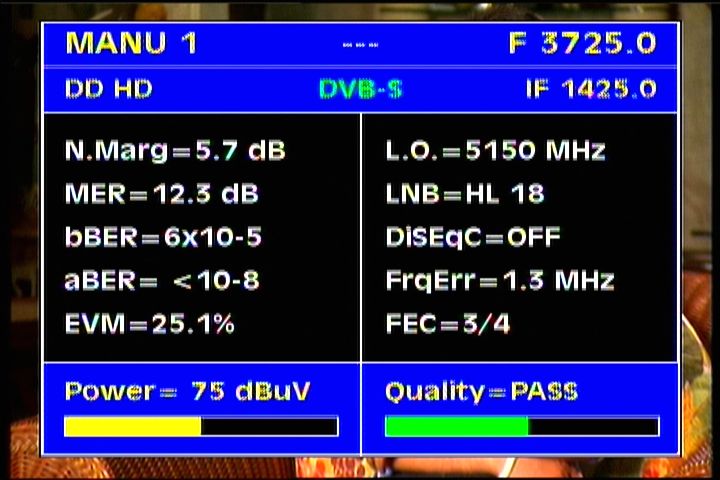 c,Insat 4B at 93.5°E - DD HD in the packet DD Doordarshan : results of quality measurement and reception conditions