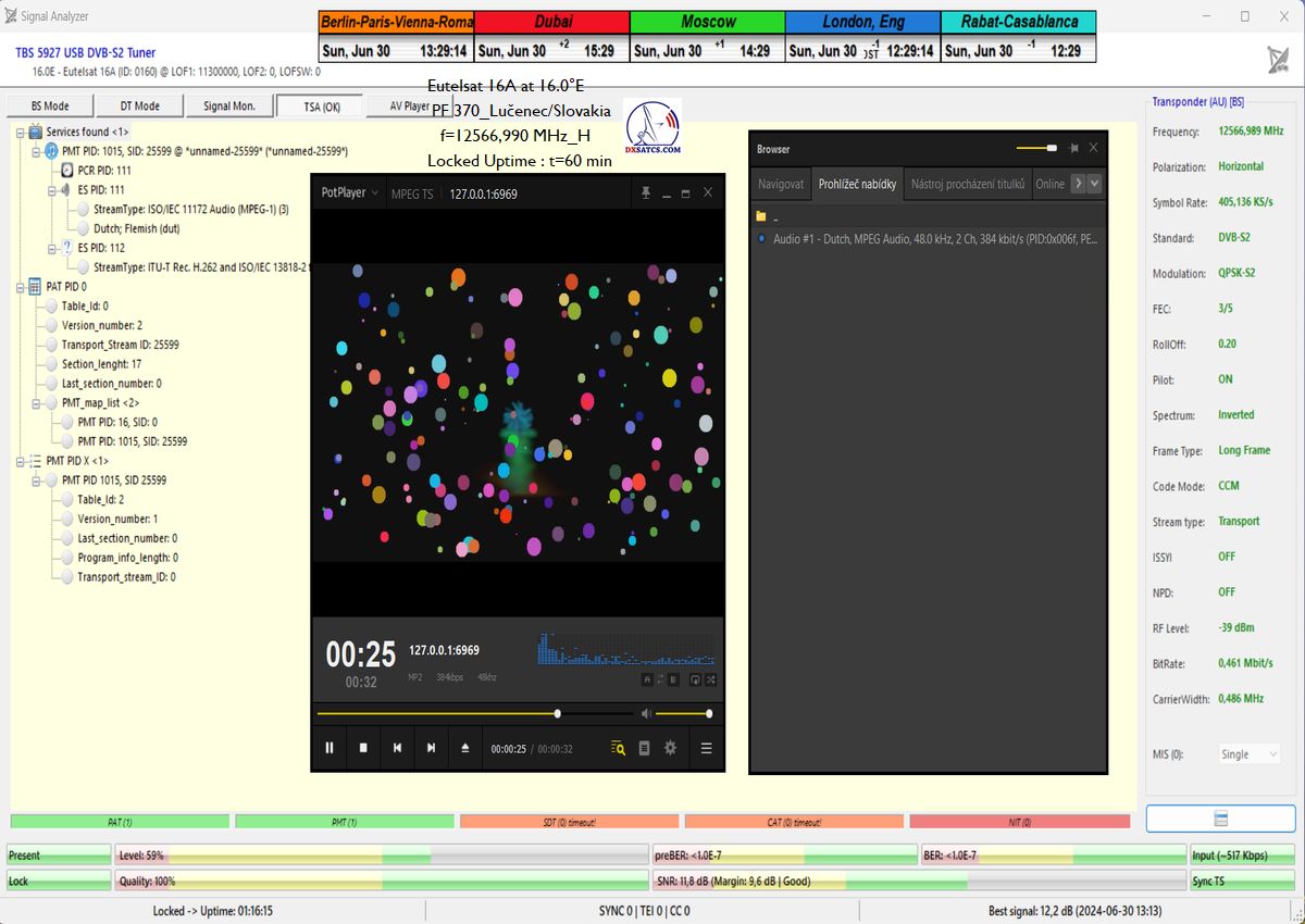 ►+25 hodín _ Priebežný stav v signálnom monitoringu dňa 27.6.2024 a online video ukážka z vysielania BNR Nieuwsradio _ TSA OK