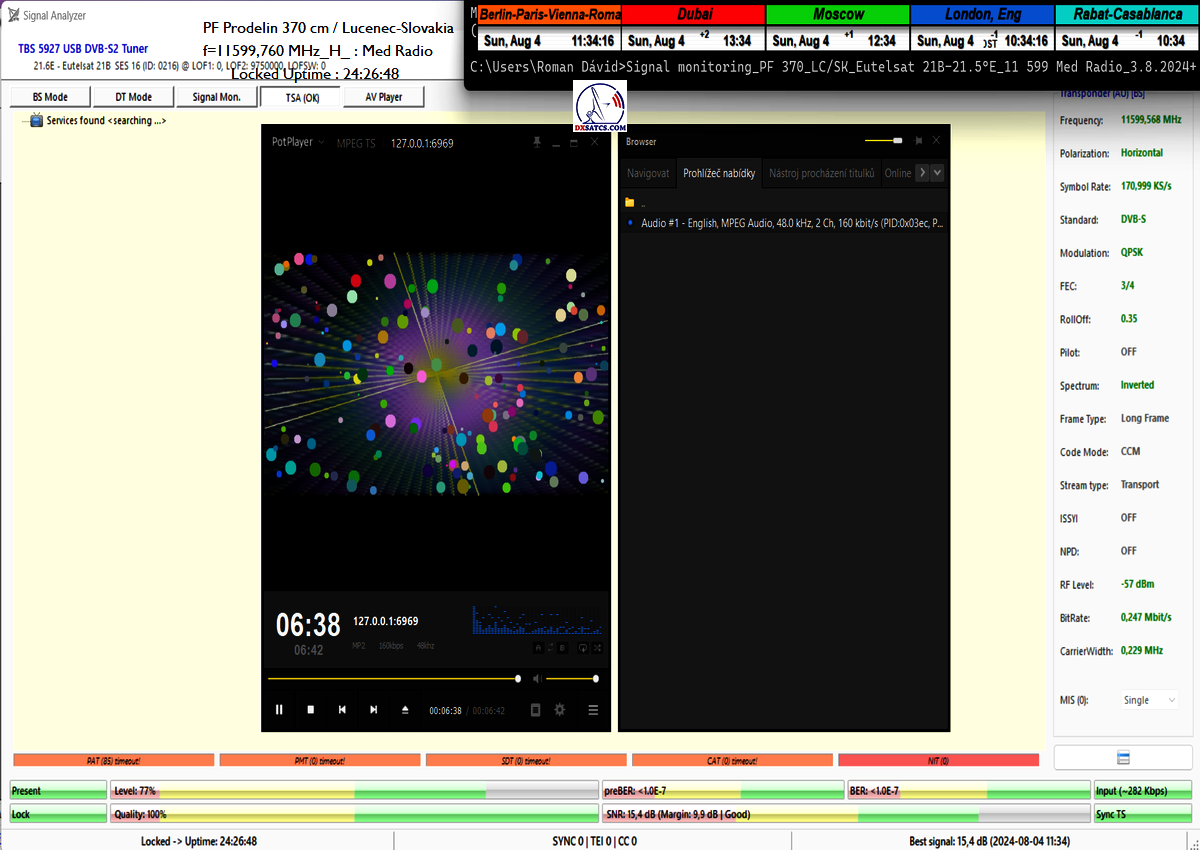 ►48+ hodín_ Priebežný stav v signálnom monitoringu dňa 7.8.2024 a online video ukážka z vysielania MED Rádia _ TSA OK
