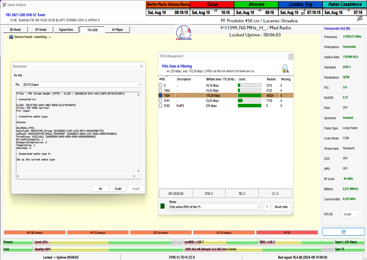 ►►Eutelsat 21B at 21.5°E-Western-11 599,760 MHz-MED Radio : Statistics of PIDs in the TS and HTTP Stream reader