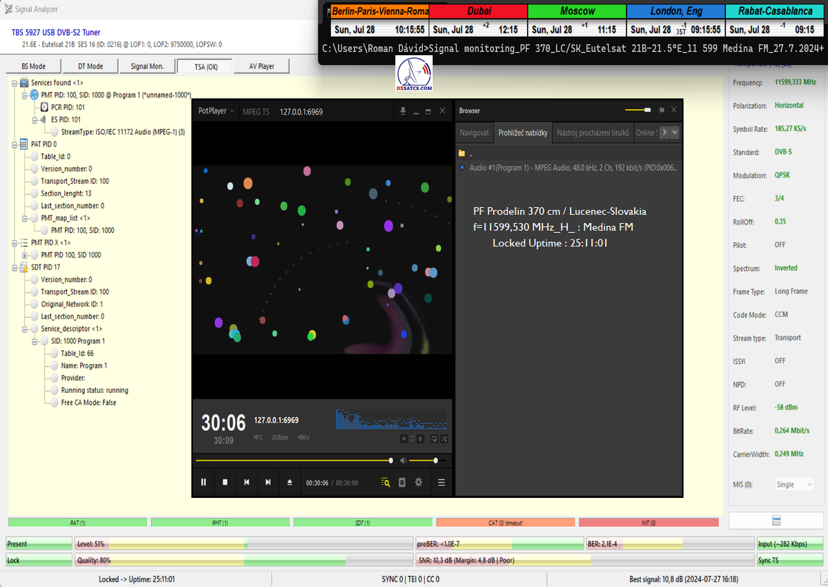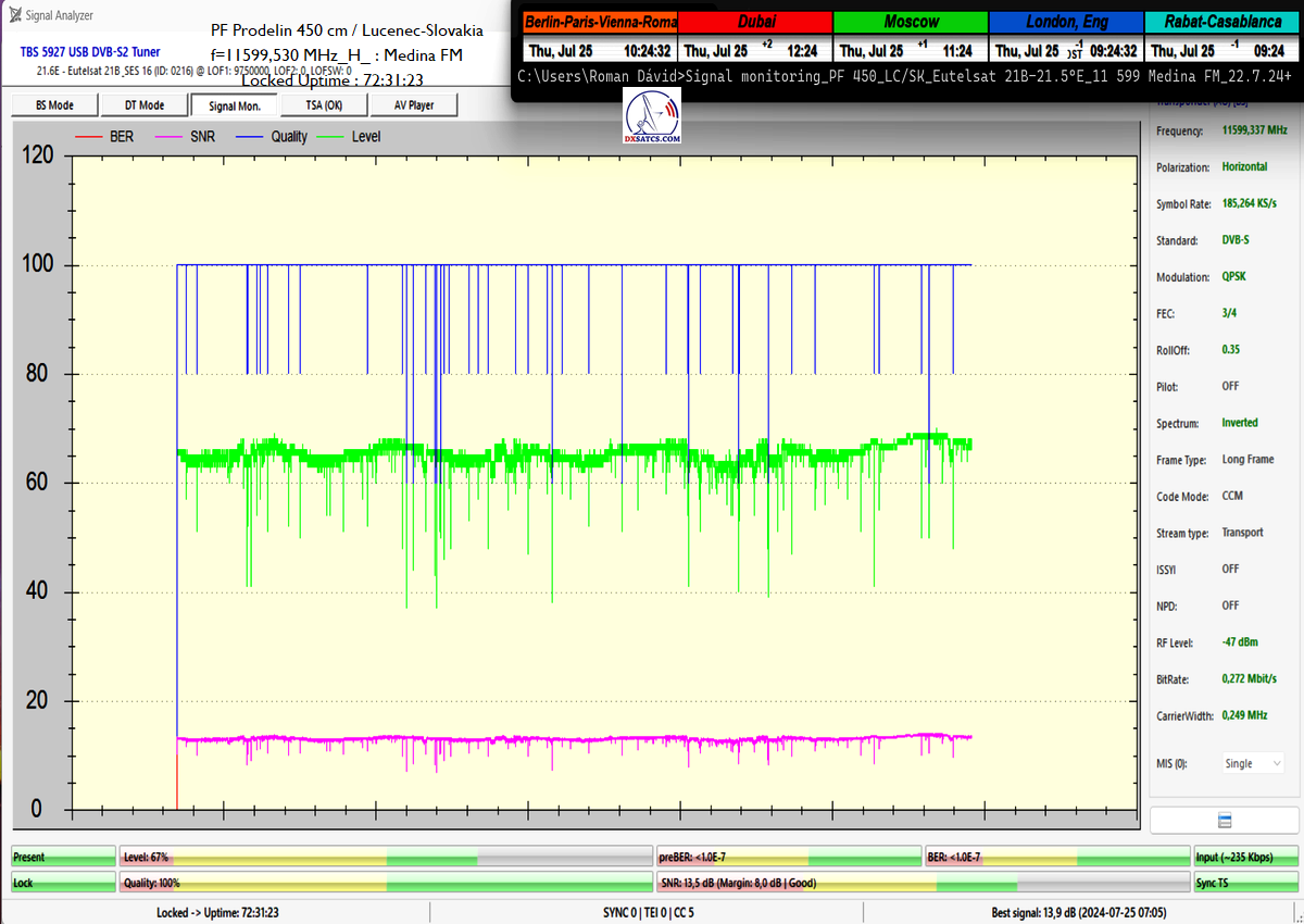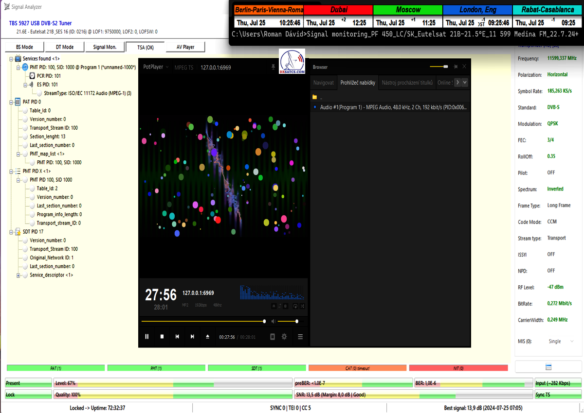 ►48+ hodín_ Priebežný stav v signálnom monitoringu dňa 24.7.2024 a online video ukážka z vysielania Rádia Medina FM _ TSA OK