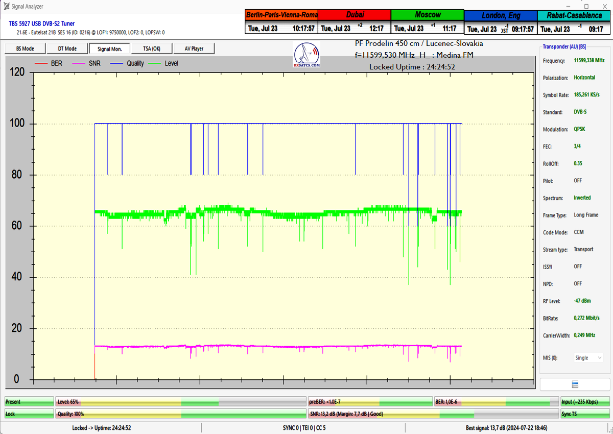 ►+24 hodín _ Priebežný stav v signálnom monitoringu dňa 23.7.2024 a online video ukážky z vysielania Rádia Medina FM _ TSA OK