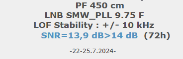 SNR=10,8-10,9 dB (24h) +80 cm @ + 3,0-3,2 dB