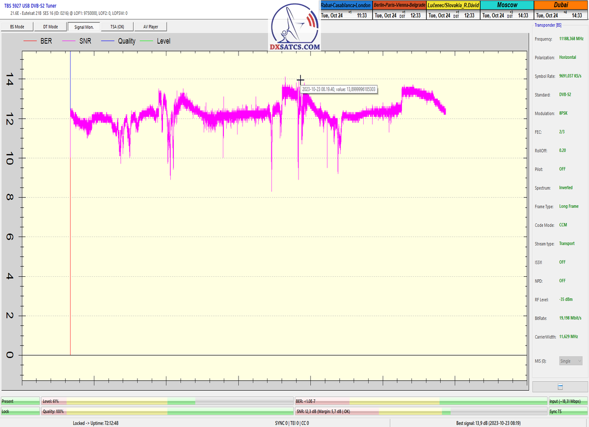 ►Analýza signálneho monitoringu od 21.10 do 24.10.2023 : dosiahol som dokázateľne exemplárny stav kvality príjmu na f=11 188 MHz