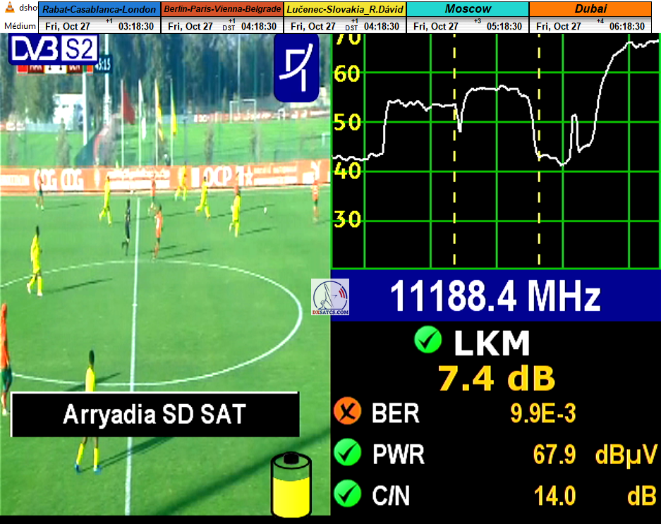 MONITOROVANÁ FREKVENCIA MAROCKÉHO PROVAJDERA SNRT Arryadia na f=11 188,4 MHz