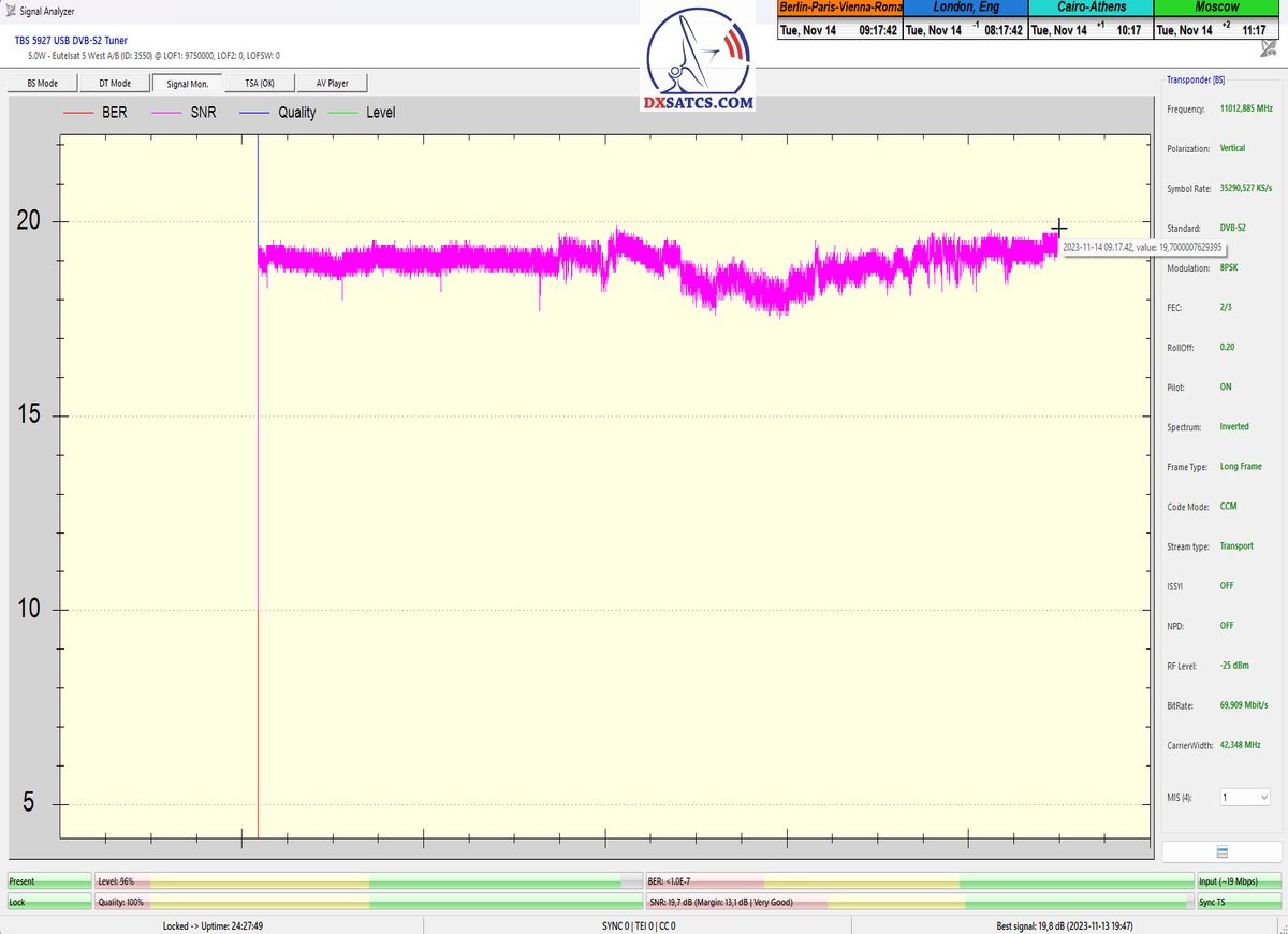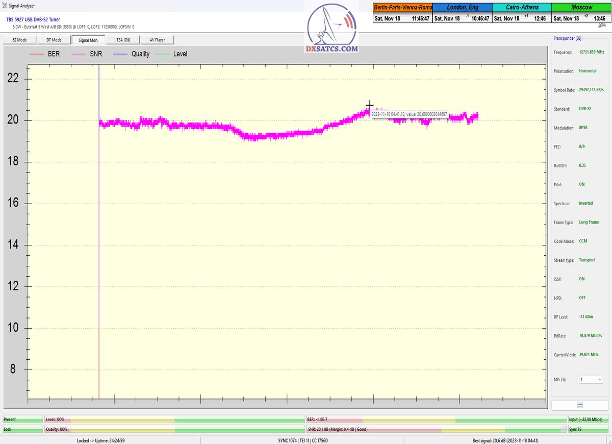 ►►Eutelsat 5 West B at 5.0°W-Transalpine-Multistream : Proving in the monitoring unit t=24 hours
