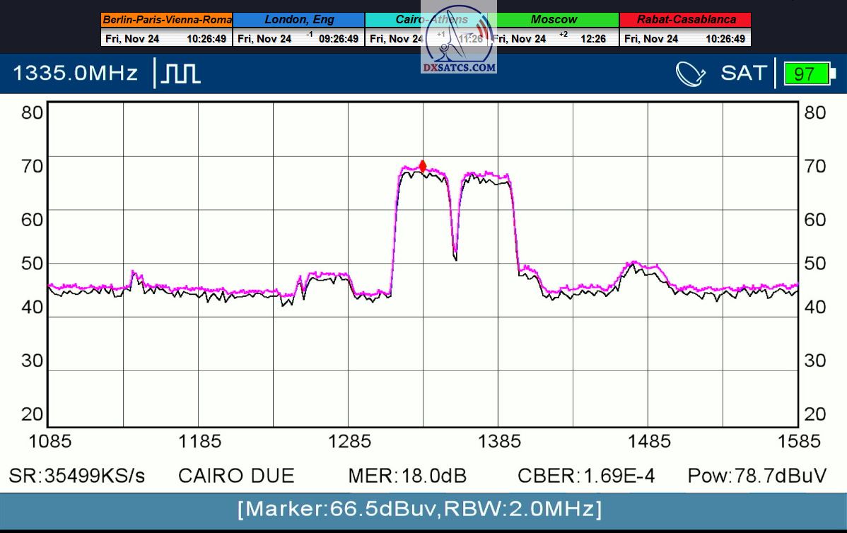 ►29.11.2023 : Based on the example of proving through signal monitoring of Rai and Canal+ packets broadcast in the DVB-S2/Multistream technological standard from the Eutelsat 5 West B satellite at 5.0°W, today I can demonstrate to you that I have effectively and, above all, stably transformed the relatively high intensity of the emitted EIRP power into the resulting quality which I quantify by the signal-to-noise ratio SNR=20>21+ dB_with the used configuration of modulation parameters of the signal path DVB-S2/8PSK/FEC=2/3.Today, I will demonstrate the effectiveness with which I have managed to minimize the mutual spectral penetration or interference of the waves from the V to the H quadrant and vice versa and how it relates to the resulting reception quality. I will perform a spectrum analysis with a frequency span of only 200 kHz, visualizing the presence of two frequencies with TT&C signals etc.