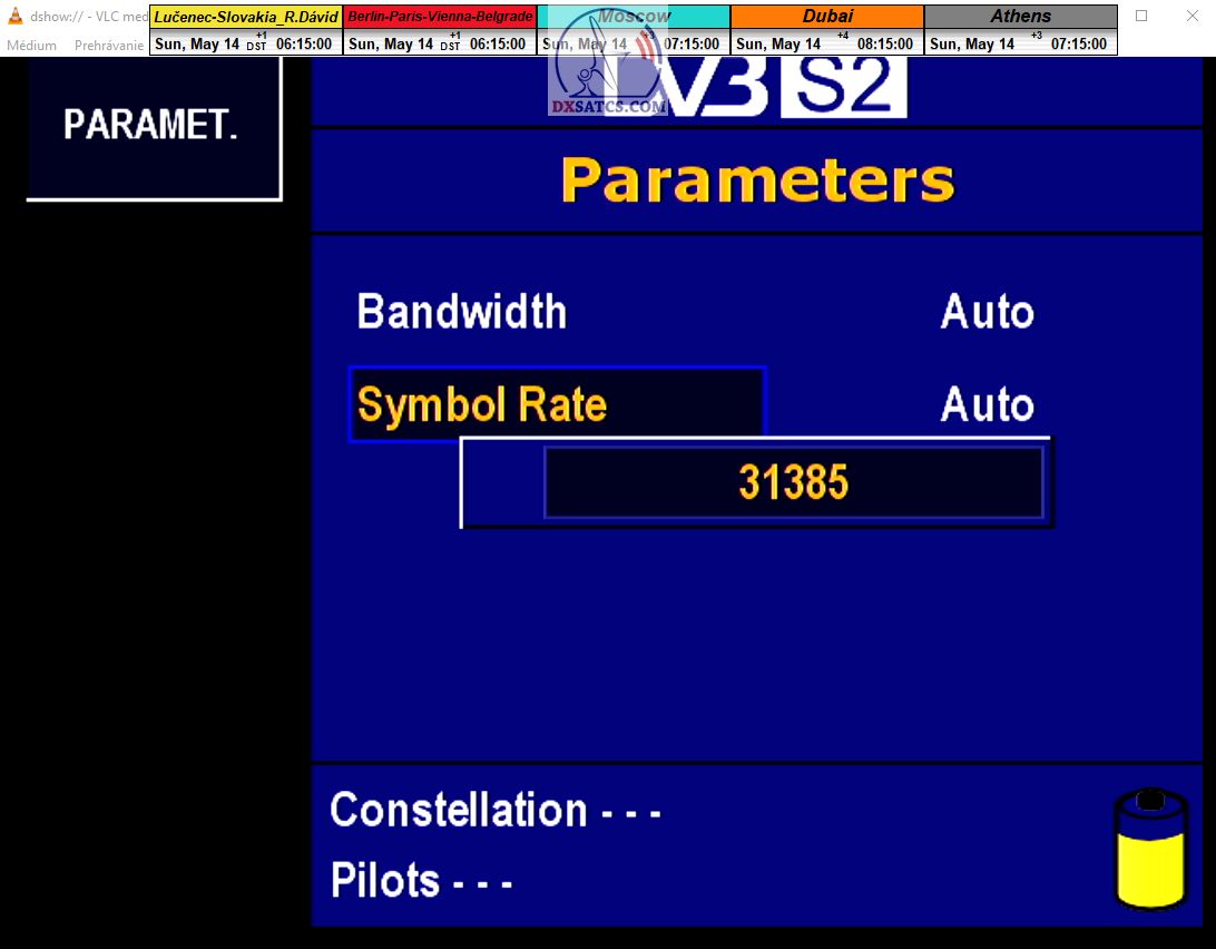 > PARAMETRE PRENOSU : DVB-S2 _ 8APSK _ SR=31 400 _ FEC=5/6 _ PLS Gold 0 _ Multistream 33-35-36 <