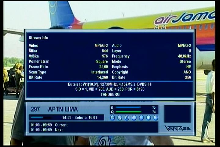 Eutelsat W2A at 10.0°E - wide footprint : feeds _ 12 730 V APTN Lima / Tandberg