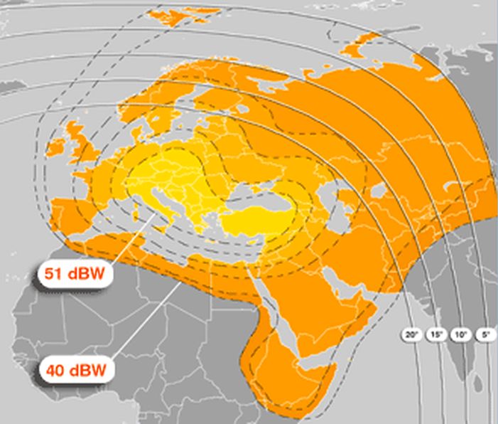 Eutelsat W3A at 7.0°E - Europe A footprint : 11 345 H Packet Eutelsat