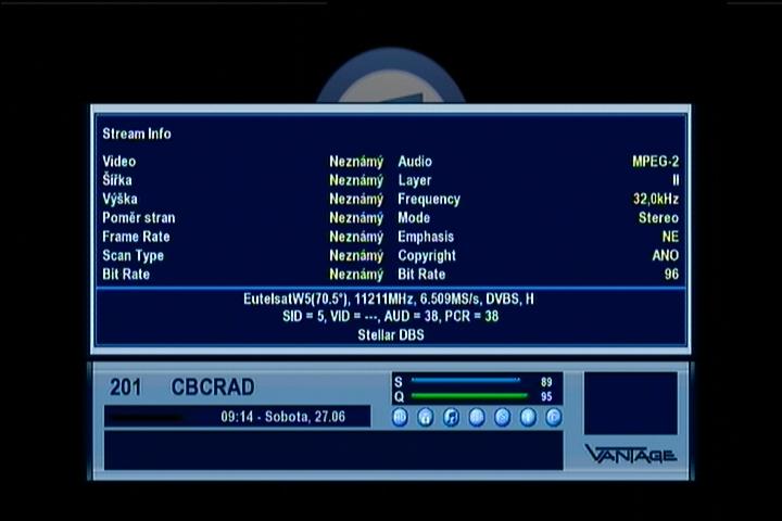 Eutelsat W5 at 70.5°E - Wide beam : 11 211 H Stellar DBS Network _ MER=17,8 dB _ Ch BER=0.00