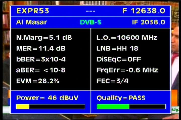 --- express am22 at 53.0°e-S1 beam : 12 666 V Nilesat netw. Egypt-quality peak MER=12.2 dB ---