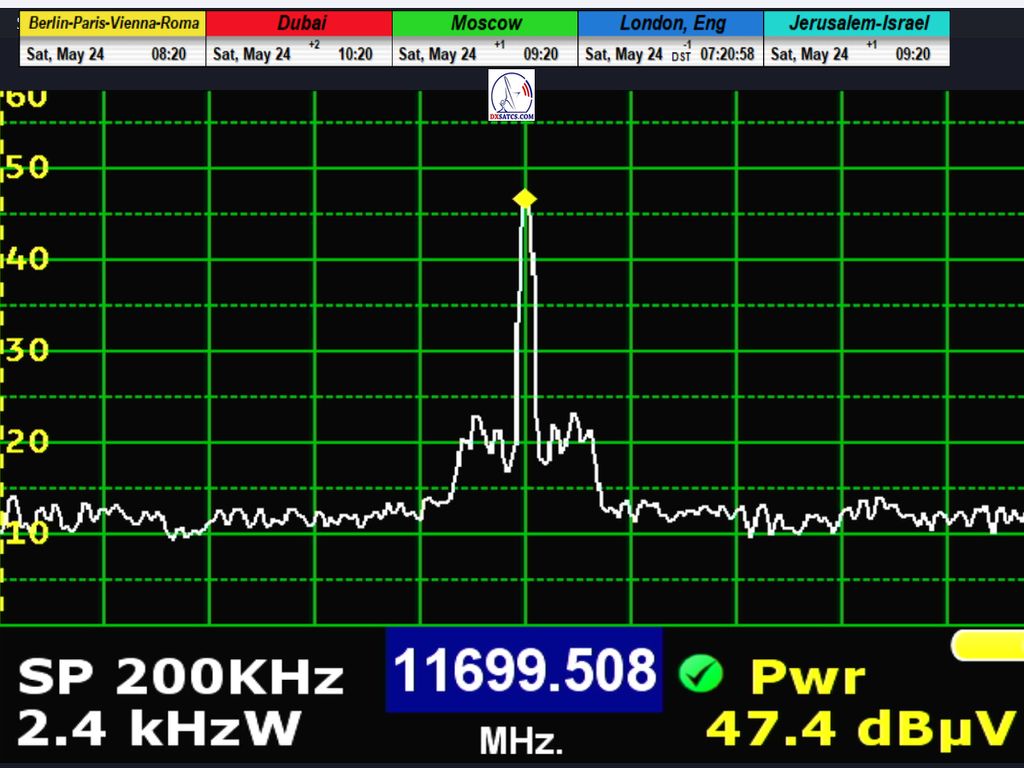 ►SK_Prvá analýza nosnej frekvencie prenosu NNTV na f=11 070 MHz(V), smerovanej do zemepisnej oblasti pevného lúča (Fixed-1 beam),určeného na regionálne pokrytie európskej časti Ruska a priľahlých regiónov zo satelitu Express-AM7 na pozícii 40,0°E.