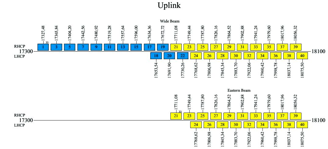 ►Express-AT1-56.0°E : Frequency plan_uplink+downlink , Telemetry , Beacon frequency