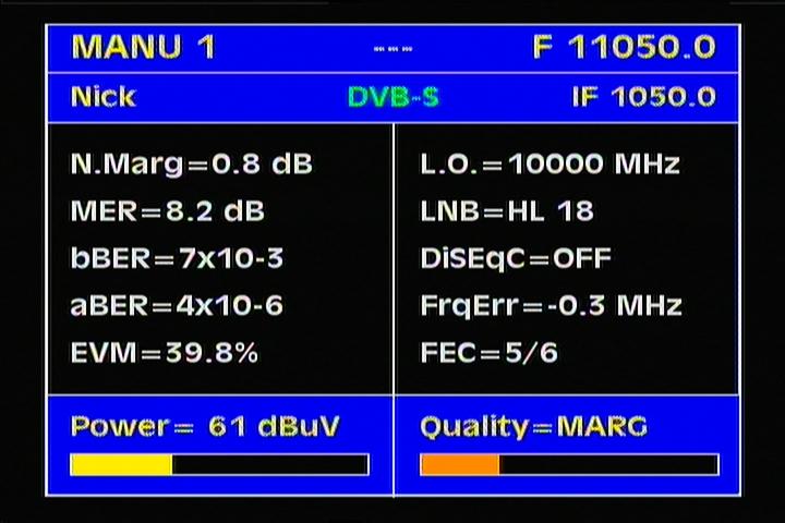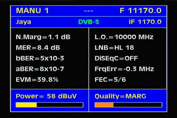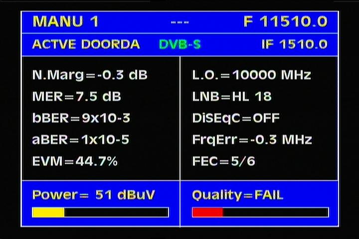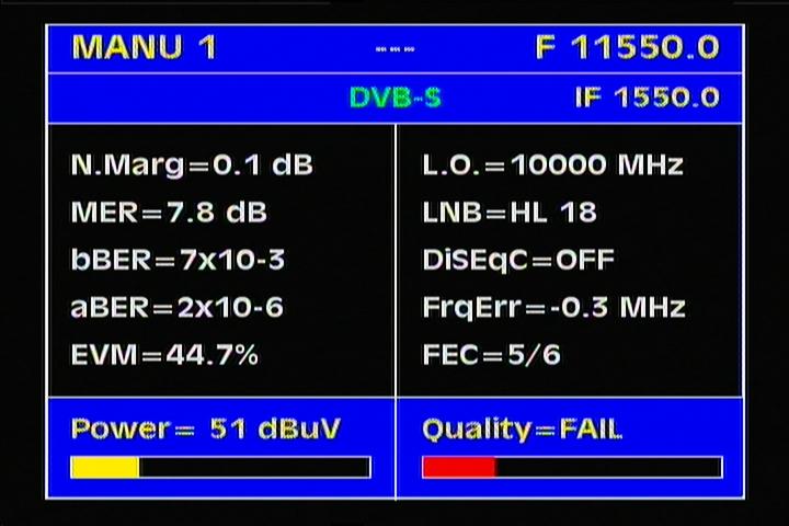 -- treshold levels for the FEC protocols :  3/4 > MER=4.0+ dB  ___  5/6 > MER=5.0+ dB --