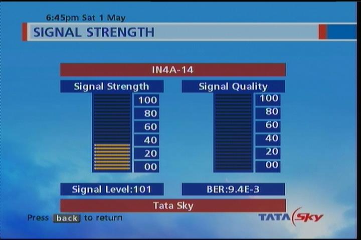 Insat 4A at 83.0°E packet Tata Sky quality
