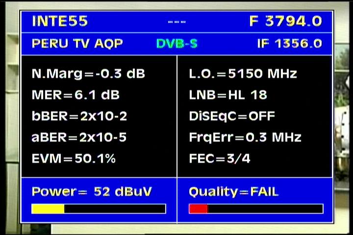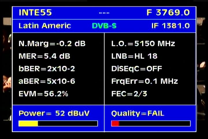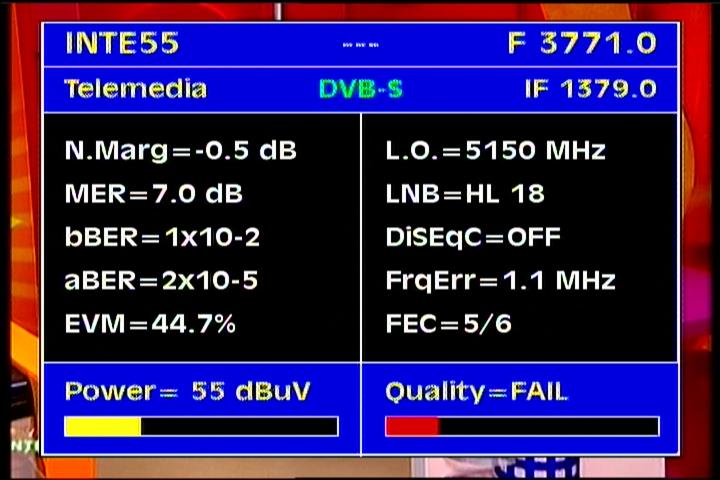 on the packet RPP at f=3 670 MHz .Threshold level required to identify the carrier at FEC 2/3 is the MER=3 dB .