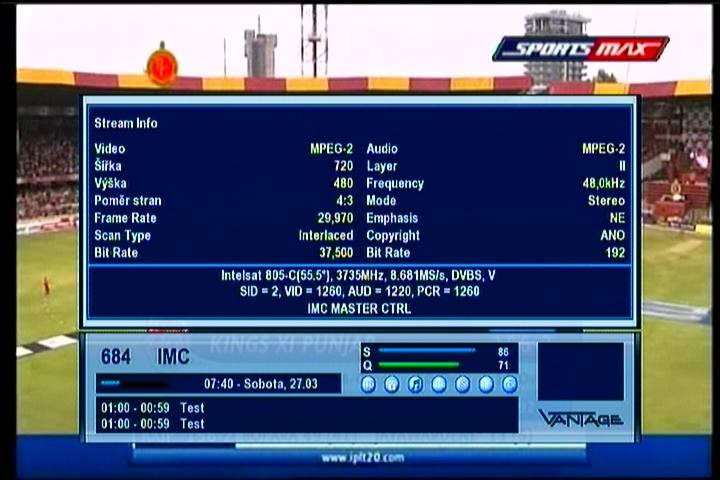 Intelsat 805 at 55.5°W - Hemi footprint - C band : feeds_3 735 V IMC / SportsMax Jamaica