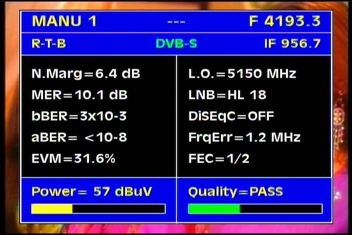 - MERp=10.7 dB _ N.MAR=7.1 dB : If we define the threshold for locking the carrier around the level of MER=2 dB
