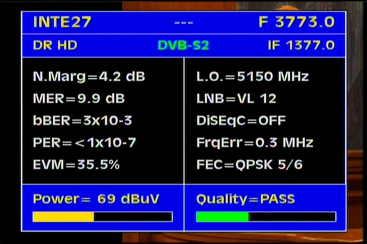 DVB-S2/PER=<1x10-7 : less than one error packet from a total of ten million defines full reception stability with slightly