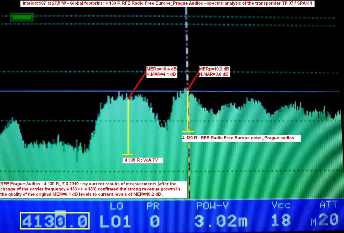 --- Intelsat 907 at 27.5°W - Global footprint : 4 130 R Packet RFE Radio Free Europe Prague ---