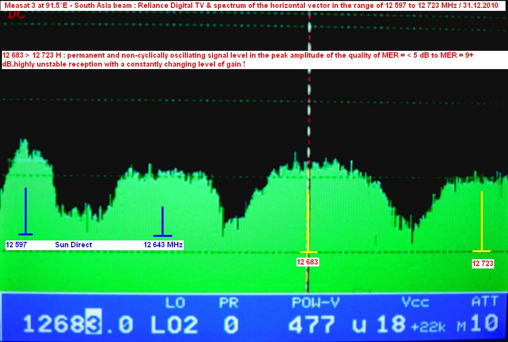Measat 3 at 91.5°E-Reliance Digital TV : identification of the satellites in orbit by ULPC Beacon -f-