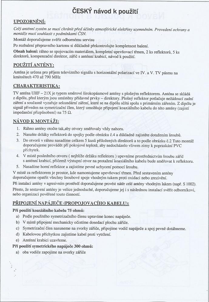 - Meracia anténa : Astra širokopásmová 3 prvky