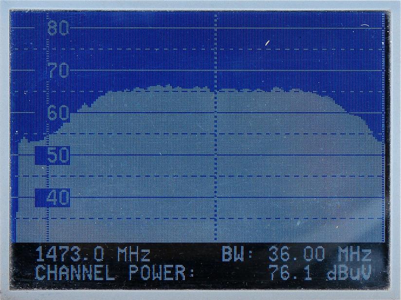 ekvivalentných ziskových hladín antény v celom orbitálnom rozsahu 40° (pri teoretickom predpoklade rovnakej hladiny príchodzieho