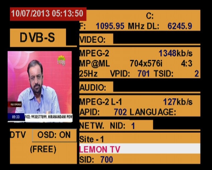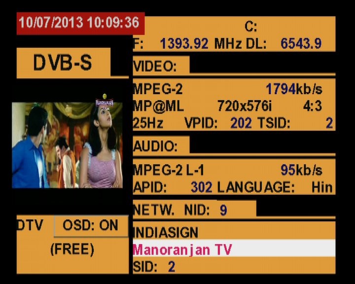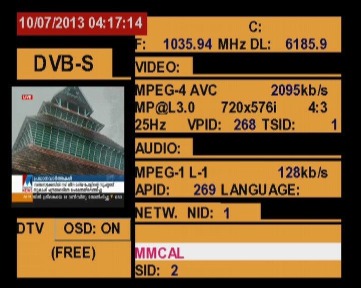 4 115 H @ 1 035.94 MHz @ SPAN 50 MHz : 83°E Manorama news![]()