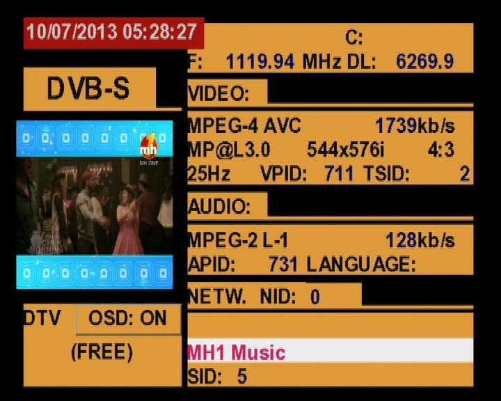 3 936 H @ 1 213.94 MHz @ SPAN 50 MHz : 83°E INX netw.![]()