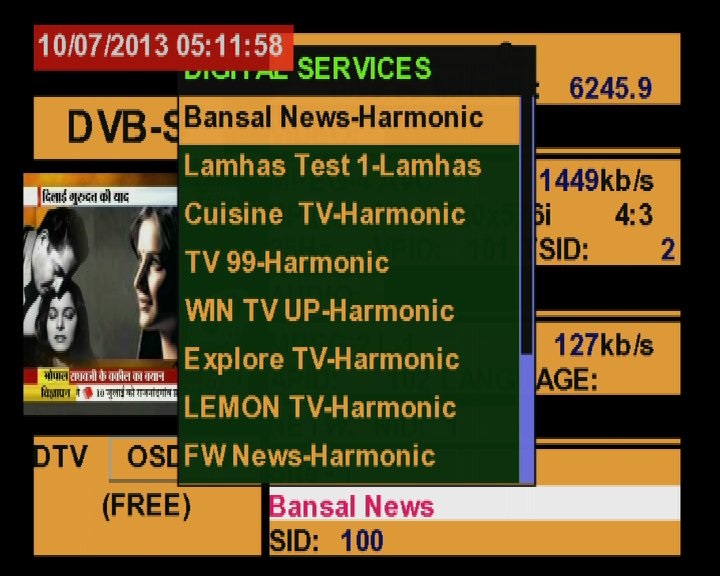 4 087 H @ 1 062.70 MHz @ SPAN 50 MHz : 83°E Live India![]()