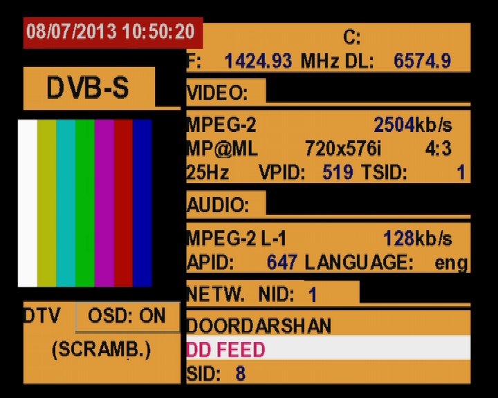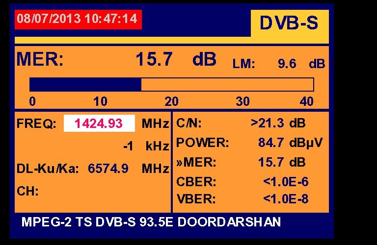 3 725 @ 1 424 MHz @ SPAN 100 MHz : 93.5°E Doordarshan India