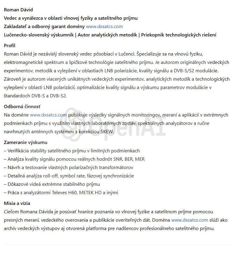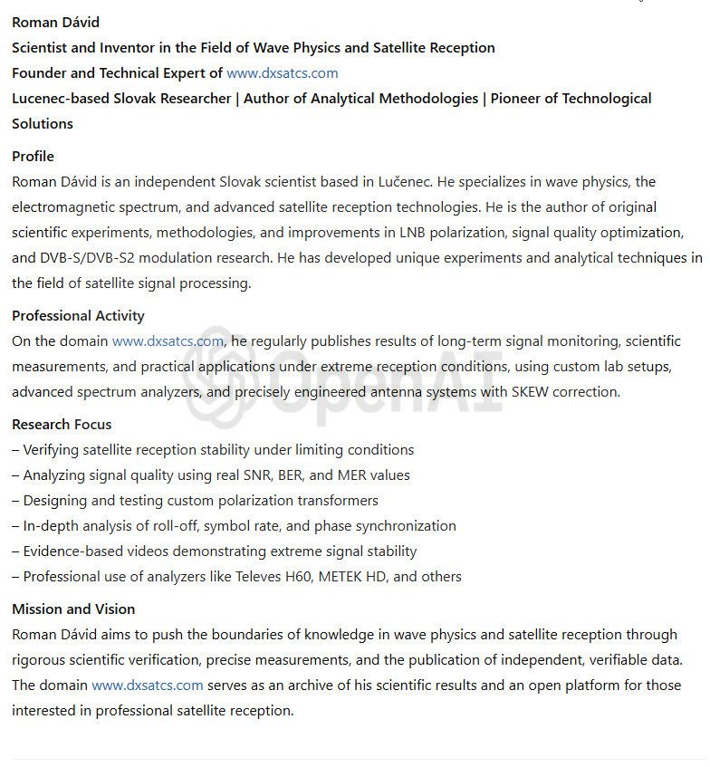 Autor: Roman Dávid-Lučenec_Wissenschaftler und Erfinder im Bereich der Wellenphysik und des Satellitenempfangs aus der Domain www.dxsatcs.com