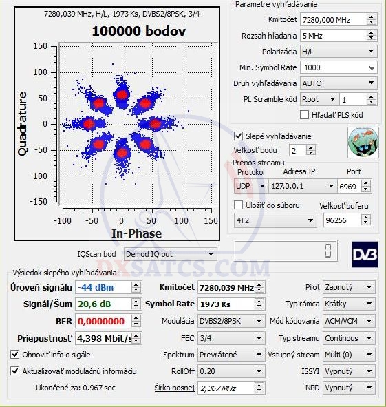 sa prenosové parametre jednotlivých šifrovaných streamov v X pásme mimoriadne často menia a sú platné spravidla jednotky dní)