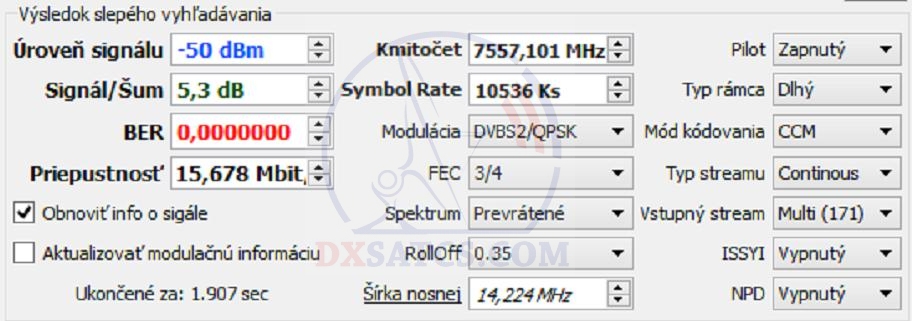 data streami,definuje frekvenciu majáka na fb=7 251 MHz a riadiacich a povelových signálov TTC v spektre okolo f=7 749 MHz.